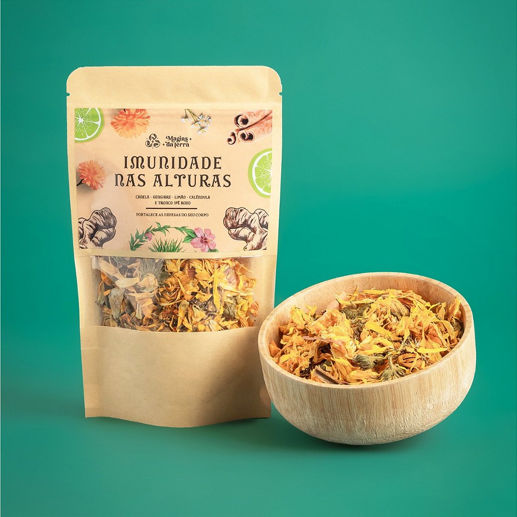 A mistura das especiarias canela e gengibre com as flores de calêndula e limão tem propriedades anti-inflamatórias e antioxidantes potentes que fortalecem o sistema imunológico do seu corpo prevenindo doenças respiratórias, cardíacas, digestivas, cerebrais além de equilibrar todo o organismo do corpo.