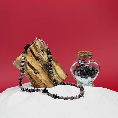 Um mix poderoso de turmalinas que não serve só pra te enfeitar. Ele te ampara. Te purifica. Te alinha com a sua própria força interior. Cada pedrinha aqui foi escolhida pra cuidar de uma camada sua.