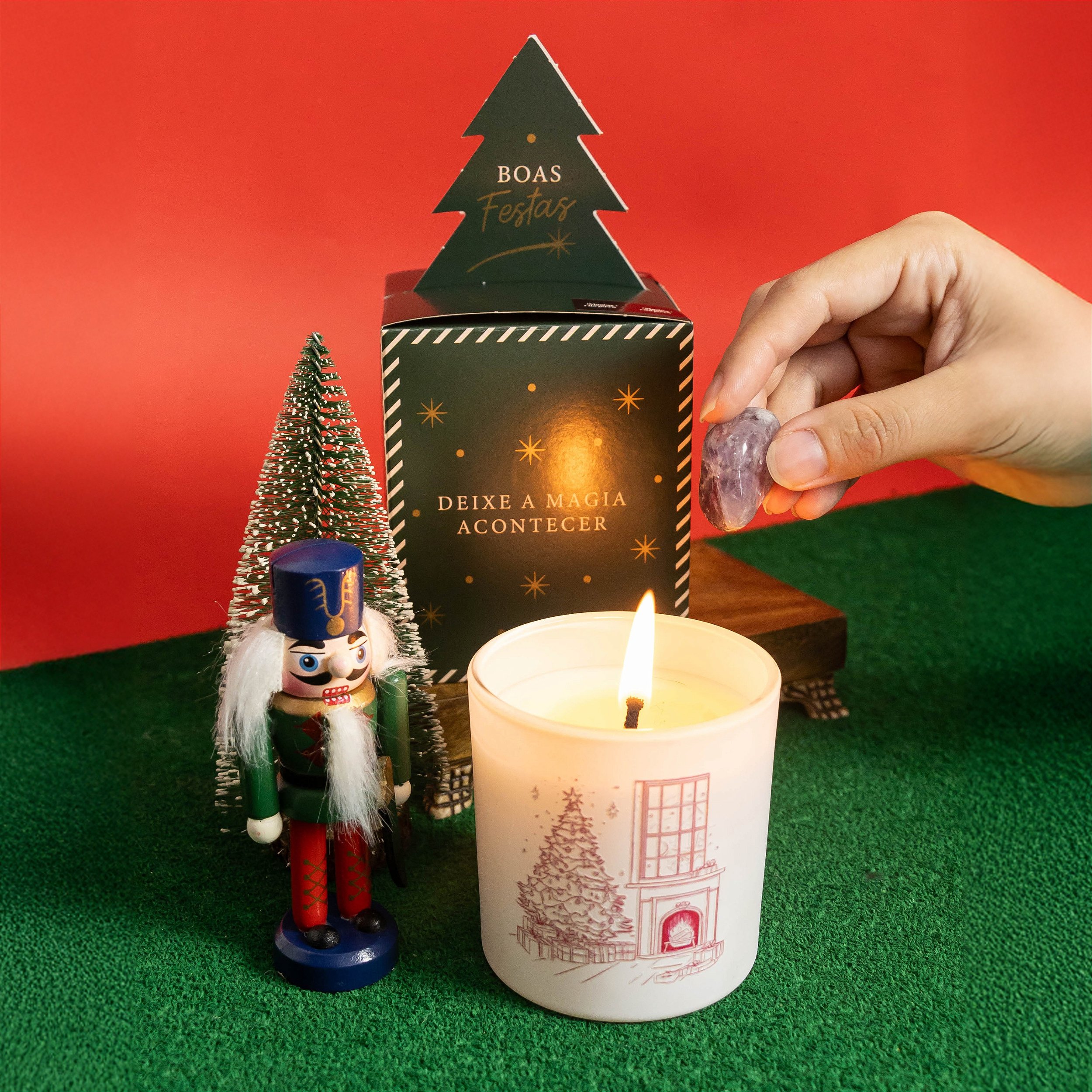 💎 Cristal Oculto: No coração dessa vela, um presente especial te espera. Um cristal cheio de boas energias para te acompanhar em cada passo desse novo ano.